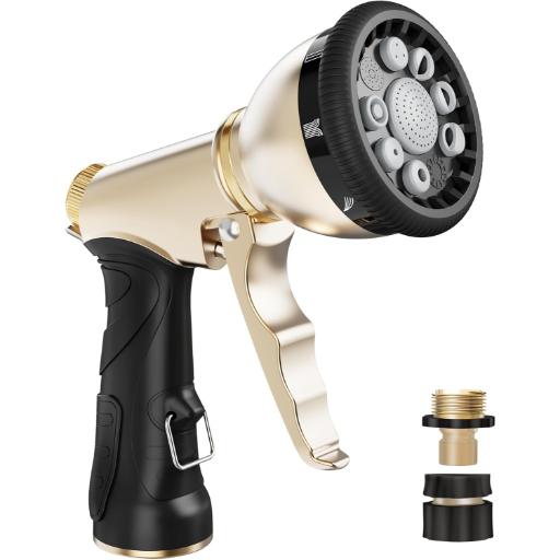 This fireman-style nozzle from FANHAO is built with full zinc alloy parts for superior durability. With eight spray patterns, a comfortable lever handle, and non-slip grip, it’s designed for both strength and ease of use. Ideal for gardening and heavy cleaning, it fits standard hoses without adapters.